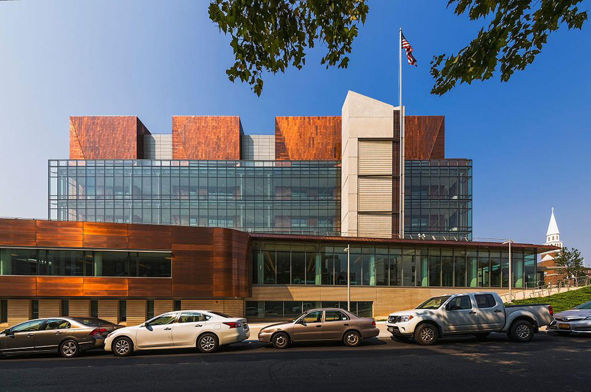 The program space included eleven supreme court rooms and three criminal court rooms, five hearing rooms, jury assembly and deliberation rooms, judges’ chambers and court offices.  The courthouse will be powered in part by building integrated photovoltaic panels and also offer three different green roofs.  It will also include a graywater system, public recreation space, and space for Staten Island’s green market.